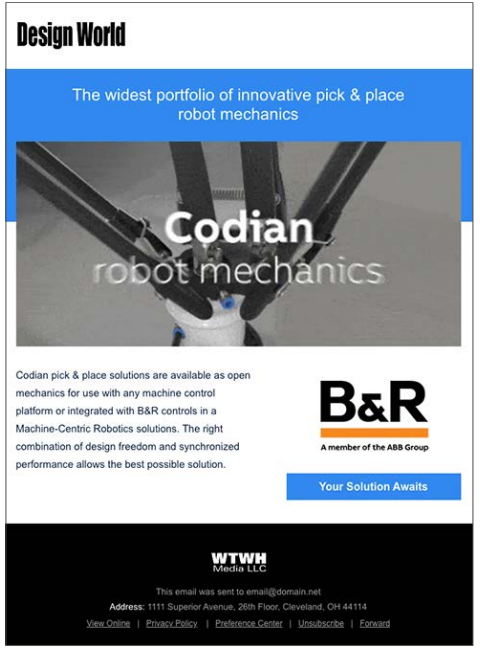 The Product Update email is an email blast to the HME Business audience showcasing your latest product, technology or innovation. The Product Update email has up to 6 spots for advertisers to highlight their product, with optionality for advertisers to take over the email.